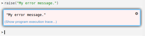 Raises the value as an error. This usually stops the program and reports the raised value, but errors can be caught and checked in tests by raises and by check: blocks.
