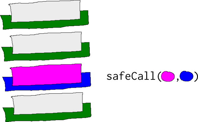 Runtime.safeCall combines the two provided functions in a special stack frame: